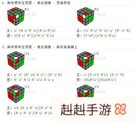 F2L是高级玩法里面最重要的部分,这部如果够快的话,后面的OLL和PLL部分即使是用最慢的方法也能在20秒内复原魔方,所以必须花大力气学好。这部分一共有41种情况,简化版里只要求记住16个公式就可以了。记住这16种情况最好的方法就是多练,其实不用死记硬背, 对照着公式的示意图,每一种情况练习个几十次左右,差不多都能记住,每天记3、4个公式是不难的。