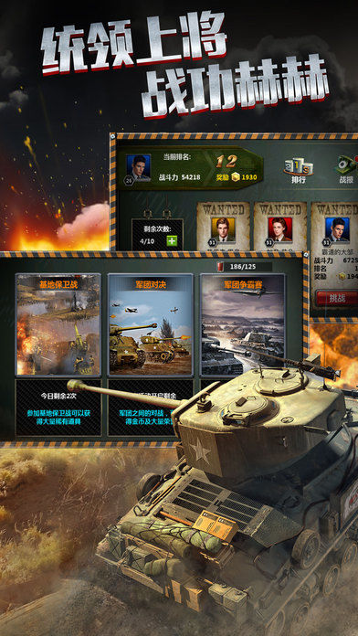 1.热血战役,火力全开,超强坦克炮火无坚不摧。
