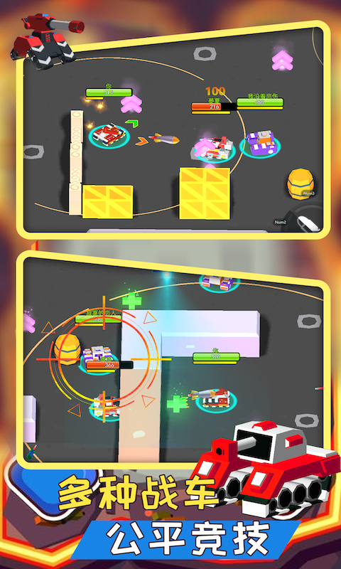 2.多种战车功能各异,自由解锁畅玩,策略对战烧脑无限。