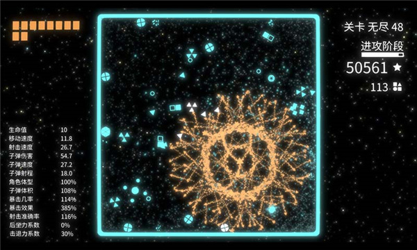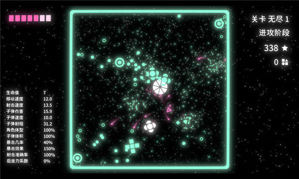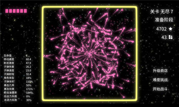 3.挑战畅爽的弹幕射击,体极简几何世界中的爽快战斗体验和冒险乐趣。