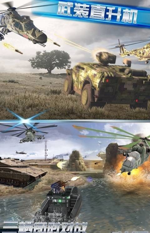 坦克武装直升机大战是一款玩法震撼的3d坦克直升机射击对抗游戏,高端3d引擎技术勾勒出栩栩如生的宏大战场,各种现代化军事武器轮番登场,火力全开的射击战斗热血沸腾。