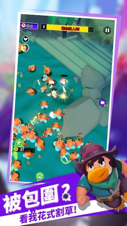 火线追鸭是一款卡通风格的乱斗竞技闯关游戏,刺激的扫射割草玩法。可爱萌鸭角色,搭配霸气专属武器,无双割草无比刺激,带来畅爽的指尖射击闯关体验。Q萌角色等待召唤,轻松养成自由解压。
