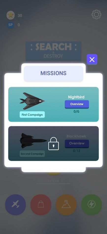 搜索并消灭是一个非常有挑战性的游戏,这也可以说是一个关于飞行战斗类的游戏了,你要驾驶不一样的飞行器,然后在这里去消灭所有的对手就能够让你获得游戏成功,他的整个玩法规则还是让人通俗易懂的,里面给你设计的这些挑战还是很多的。