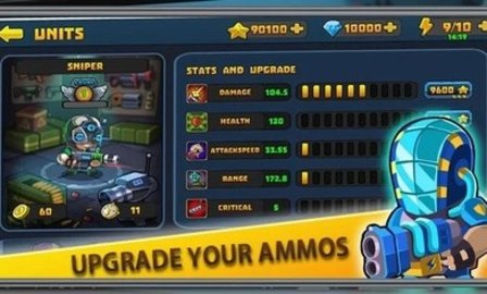 1、招募更加勇敢的士兵,你可以升级它们的战斗力,让火力更凶勐;