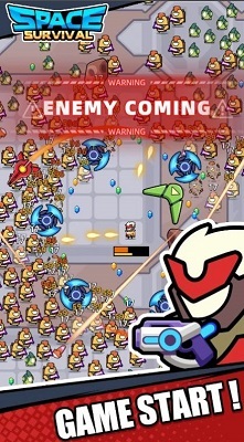 空间生存是一款卡通风格的多人射击竞技手游游戏,在游戏中玩家能通过击败敌人获取经验值,到达一定的经验值就能选择增益效果,玩家需要不断击败各种敌人,成为最后的胜利者。