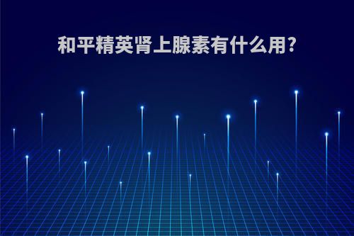 和平精英肾上腺素有什么用?(和平精英肾上腺素打药时间)