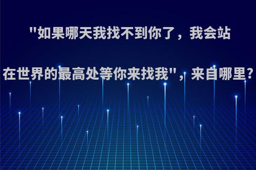 "如果哪天我找不到你了,我会站在世界的最高处等你来找我",来自哪里? 条条 2024-07-28 20:01:19 233 一,"如果哪天我找不到你了,我会站在世界的最高处等你来找我",来自哪里?顾漫小说,何以笙箫默顾漫小说,何以笙箫默总结:以上内容就是赳赳手游提供的"如果哪天我找不到你了,我会站在世界的最高处等你来找我",来自哪里?详细介绍,大家可以参考一下。