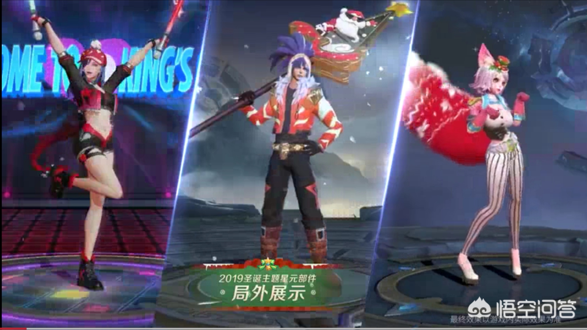 众所周知,本年度圣诞活动没有推出新皮肤,而是上线了各种星元圣诞节配件,而拥有这些配件的英雄皮肤分别为节奏热浪,街头霸王,魅力维加斯,孙策大乔的猫狗日记!