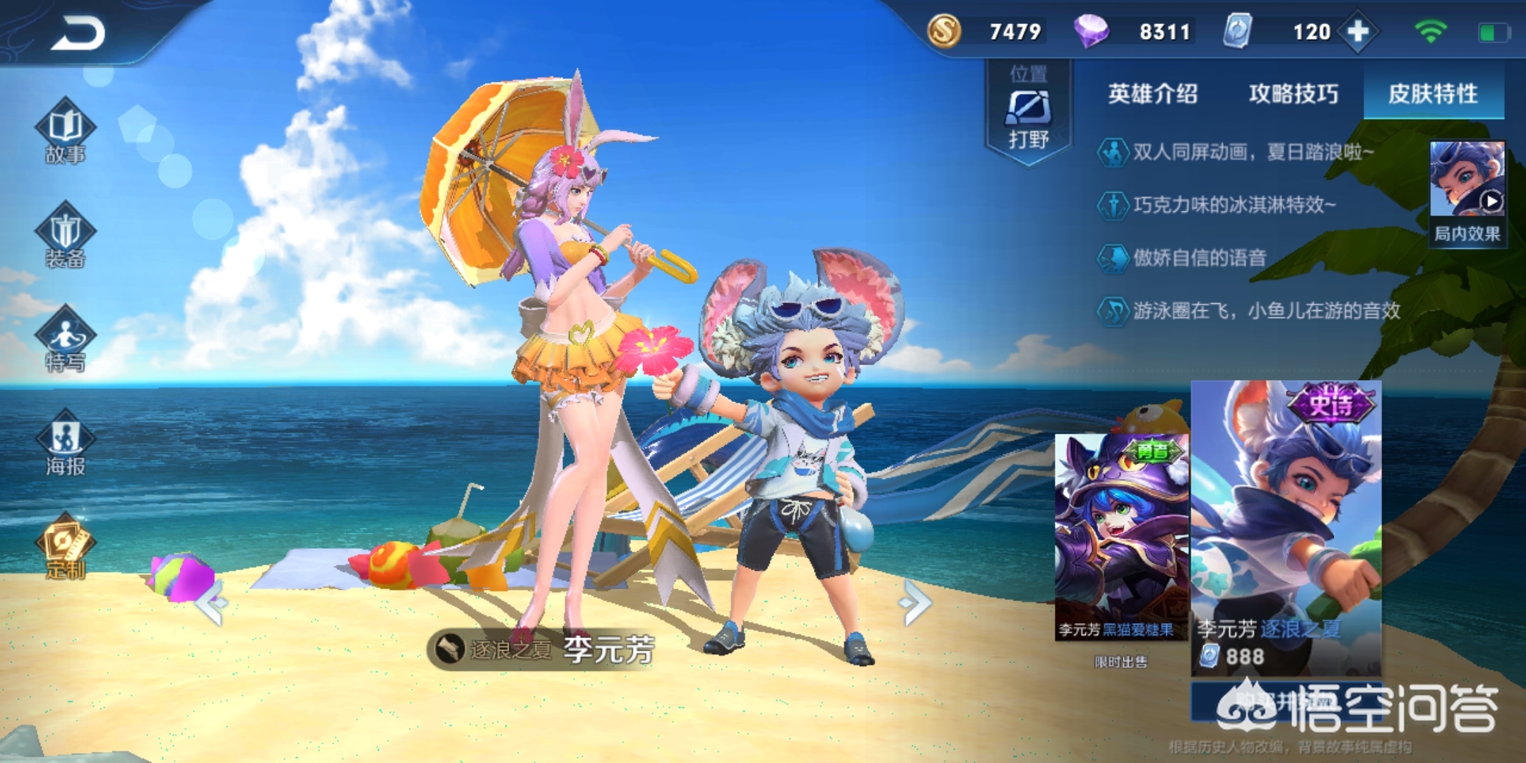 除此外,李元芳的逐浪之夏皮肤也是非常不错的,作为夏日稷下版本,怎么少得了如此热情阳光的皮肤呢,此皮肤特效也是深受好评的,虽说如今元芳强度一般,出场率不高,但喜欢这个英雄的玩家还是可以收藏一番的!