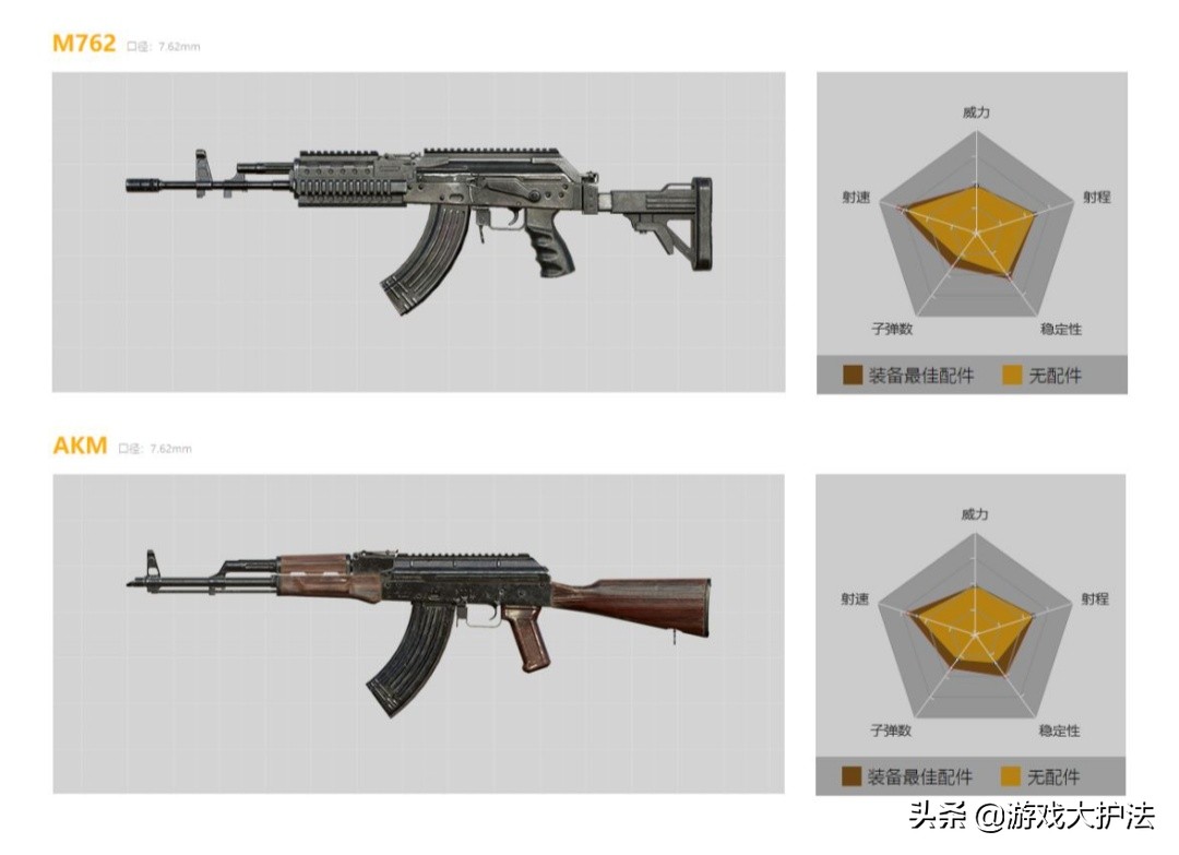 再着,选择钢枪的玩家,往往都是一些技术过硬者,在选择钢枪武器的时候比较侧重输出,虽然AKM在威力上要比M762高,但是在射速上却不如762。加上M762的水平后座力相对于AKM低得多,压枪更容易。