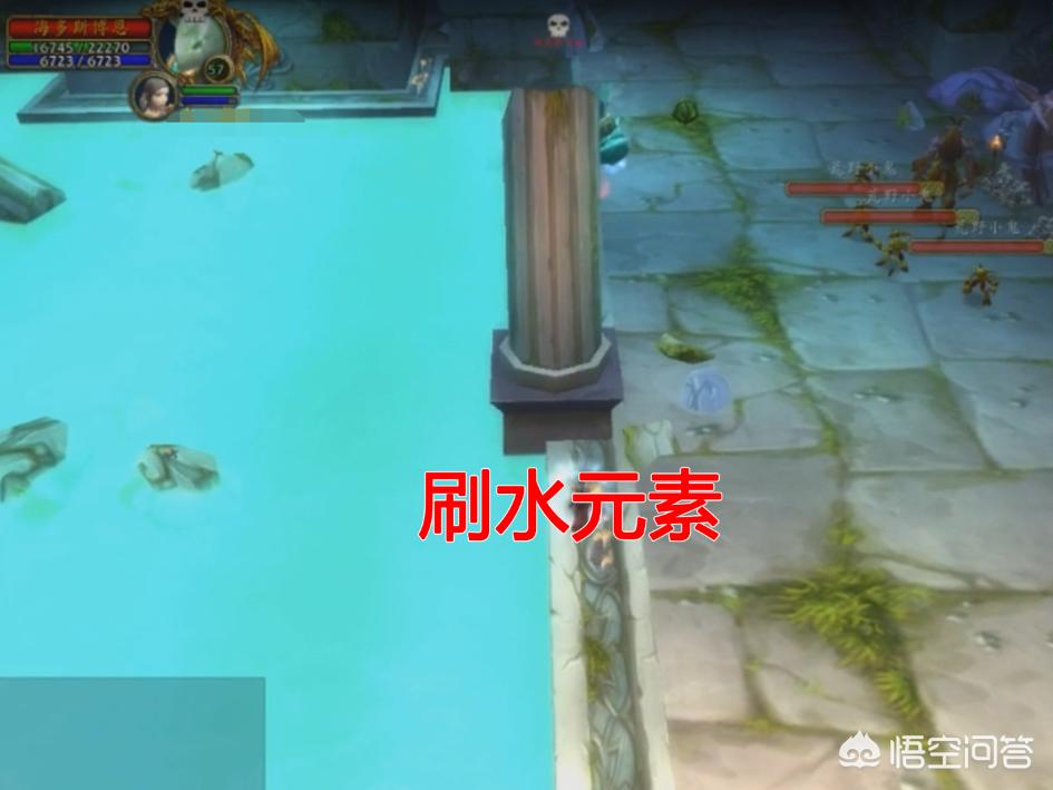 法师单刷水元素的方法胖哥之前详细介绍过,不论是绕大柱子,还是卡地形抱小柱子,目前已经有很多法师在刷了,推荐使用抱小柱子的方法,几乎可以做到无伤杀水元素,只要注意旁边的小怪就可以了。