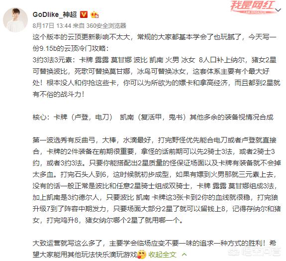 粗略算算云顶出来到现在也有一个多月了,到处都能看到下棋下疯了的玩家和解说,就连职业选手都闹出了用云顶里面的合成公式出装备的笑话,足见这个模式对广大玩家的吸引力了。