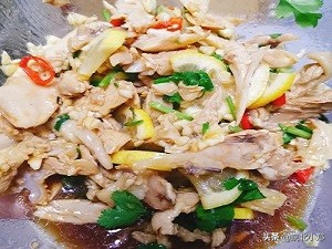 喜欢吃网红柠檬鸡爪的人,可以用这种方法试试做柠檬手撕鸡,可以加入柠檬片和陈醋,其他调料变化不大,吃起来酸、辣、香、爽,夏天没有胃口的可以尝试下。