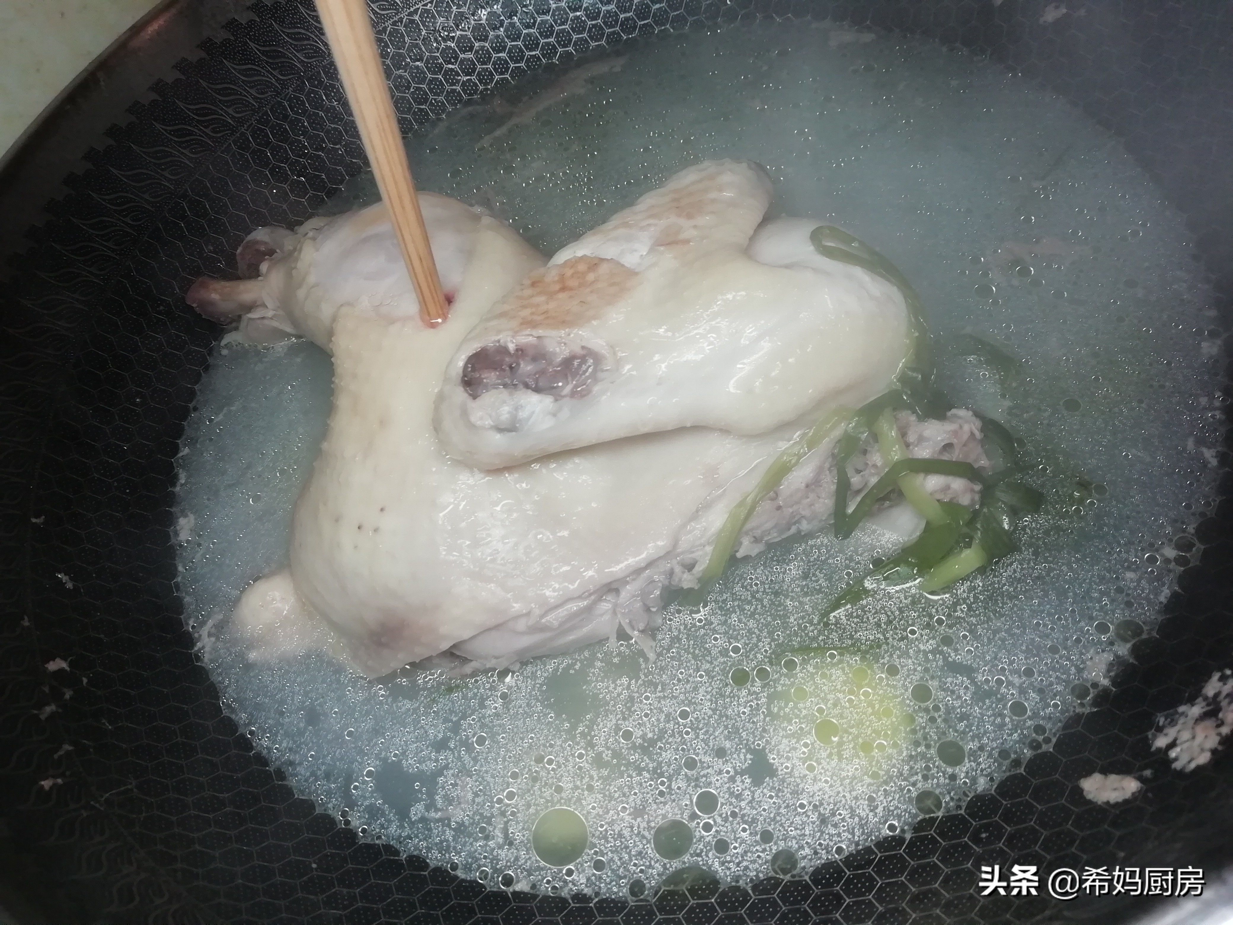 2、三黄鸡煮至时不易过长,主要是用汤水焖熟的