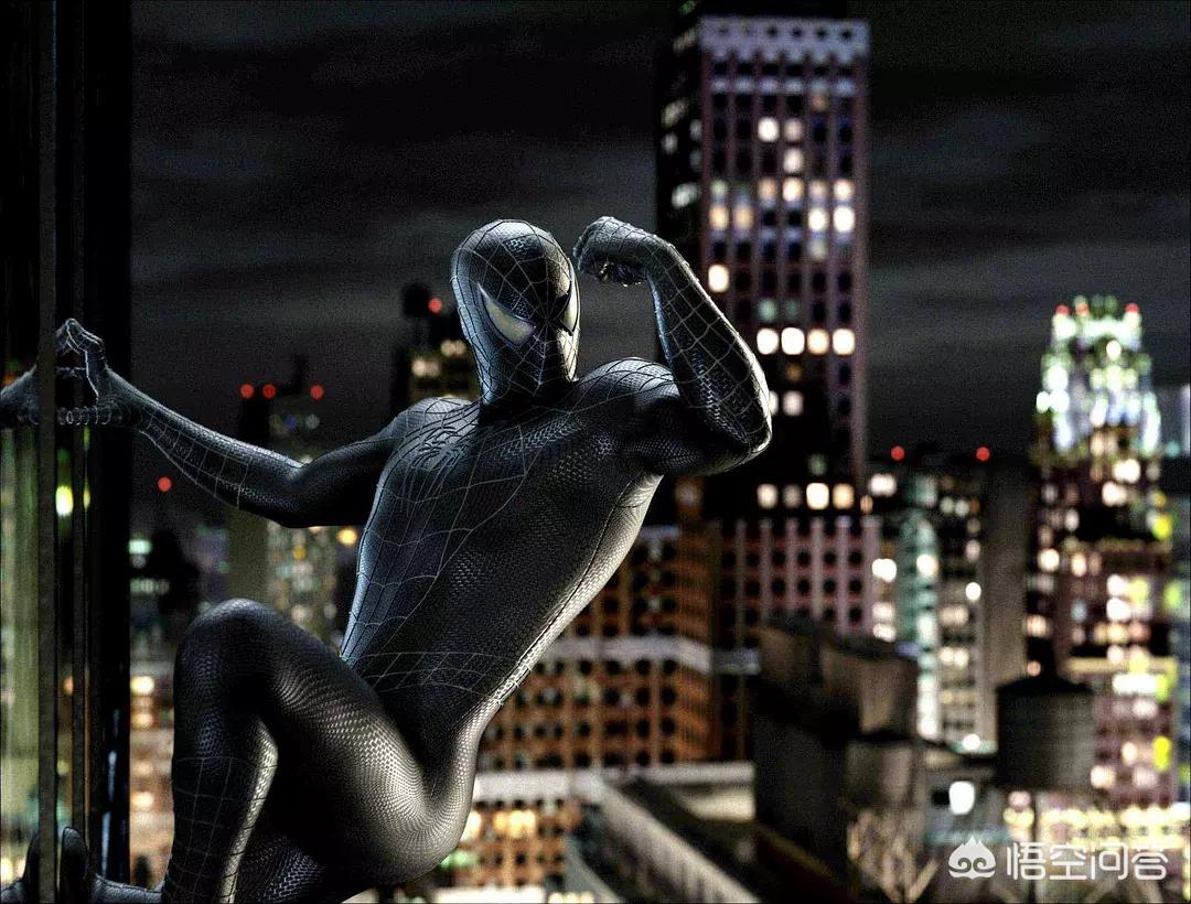 共生体战衣可能是蜘蛛侠除红蓝战衣外最著名的战衣,黑色的战甲包裹下的蜘蛛侠不在阳光、正能量,当身体内的阴暗面不断放大,我们认识了全新的蜘蛛侠。