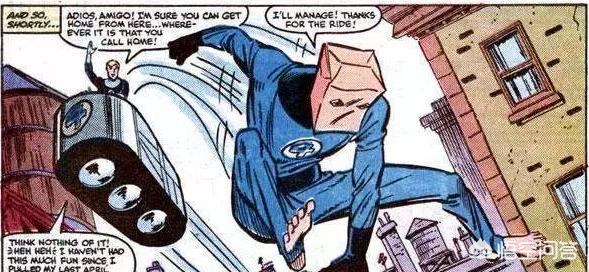 当里德用共生体最恐惧的声波武器褪掉共生体战甲后,彼得·帕克身上只剩下了一条内裤,不得以他向霹雳火借了一套神奇四侠的战服穿,由于神奇四侠们都不佩戴头罩,蜘蛛侠只好暂时找个纸袋抠两个窟窿扣在脑袋上打击罪恶…