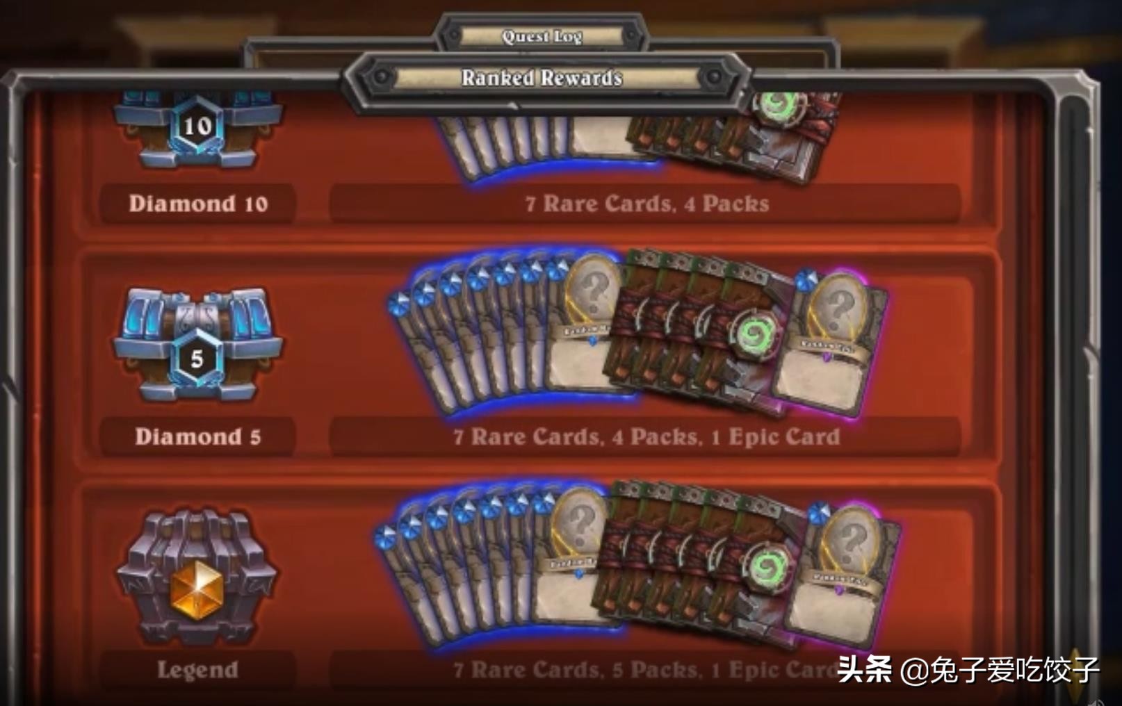 未来的赛季中,只要玩家达到5场胜利就将立即获得该赛季的卡背图案奖励,无需等到赛季结束。奖励宝箱会包含卡背以及来自最新扩展包的卡牌包、稀有卡牌甚至是史诗卡牌。每个段位对应的卡包奖励也是不同的。青铜组和传说组的卡包奖励相差可以达到10倍之多,所以在这里提前预祝大家都能成为传说玩家。