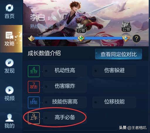 李白在重做之前的操作难度也是比较大的,不过自从一技能可以增加大招剑气之后,李白的大招刷新变得相当容易了,但真正做到七进七出,打完一套潇洒不回头的玩家也不多,所以官方同样给出“高手必备”的评价。