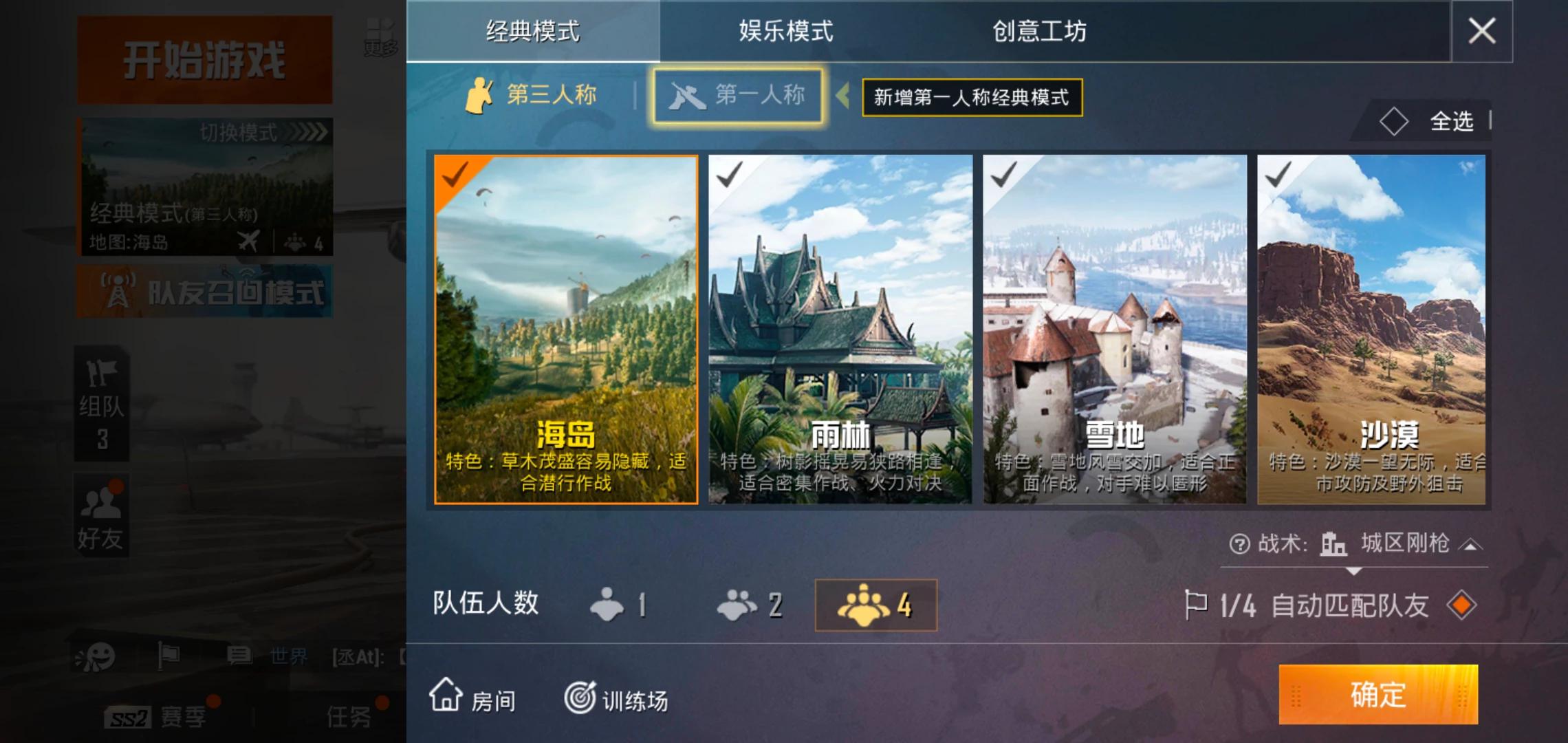 第三,如果你前面两样能做到一样的话就可以去钢枪了,就打单人四排,从低段位开始打起,什么时候你觉得打的费劲了,几乎每把都不能走出跳伞地的时候你就可以停止了,这就是你的极限了,那么你以后就打这个段位以下的,你会觉得没有压力,看到人也就自然而然的不会慌了。