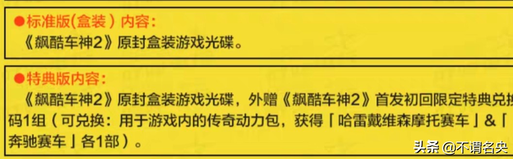 总结:以上内容就是赳赳手游提供的飙酷车神2(ps4)特典版和标准版有什么区别?(飙酷车神2标准版和豪华版)详细介绍,大家可以参考一下。