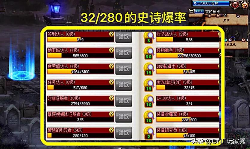 最后,作为一名12年DNF游戏龄的资深勇士,个人也有自己的一套深渊玄学,截至目前就一个角色刷深渊,共280次,掉落了32件史诗装备,其中包括一把毕业武器,不过遗憾的是目前还没有神话装备。