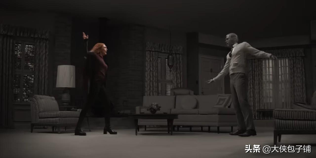 甚至画面中也是出现了旺达是“彩色版”,而幻视则是“黑白版”的风格。