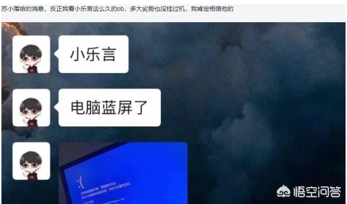然后很多粉丝就开始在贴吧里面给小乐言洗白了起来,有一位自称是大手子的粉丝发了一张苏小落的聊天截图,苏小落解释说是当时小乐言的电脑蓝屏了……