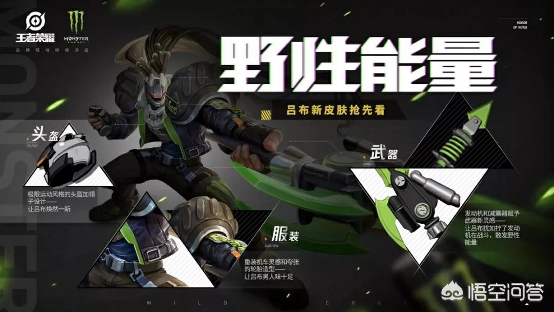 另一款就是吕布的“原谅色”皮肤“野性能量”,这款皮肤爆出来有一段时间了,整体是以机车手为主题的,非常的狂野,充满活力,武器也变成了机车的排气管,头盔护膝装备齐全,但就是颜色很尴尬,喜欢的朋友可以等他们上线了。