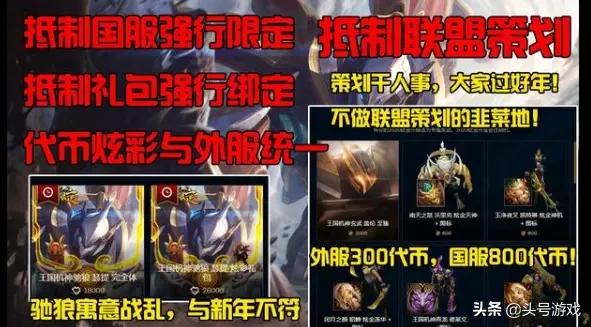 原本今年新年是没有限定皮肤的,可是国服将王国机神系列皮肤强行说成新年限定也是引起了相当多人的反感,而最让人无法忍受的还是将T2级别的皮肤强行限定卖出了高价,引起了无数网友的愤怒: