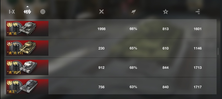 四个老虎都挺好用,胜率都不错,虎式靠机动和射速穿深,正面加强后也能抗一下,虎P虎王正面装甲无敌,射速穿深也高,抗线就是顶上去,不要怂。