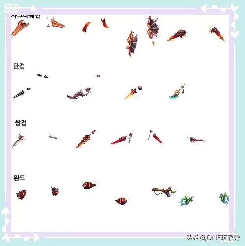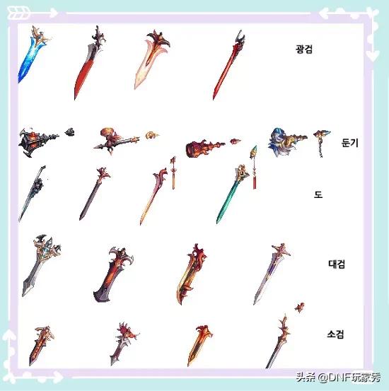 DNF韩服在今天是如期更新了100级版本,而100级史诗武器的外观也是全部曝光,几家欢乐几家愁,秀儿为大家先展示一下吧!