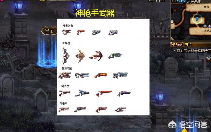 2、神枪手武器从上到下分别为:自动手枪、手弩、手炮、步枪、左轮。