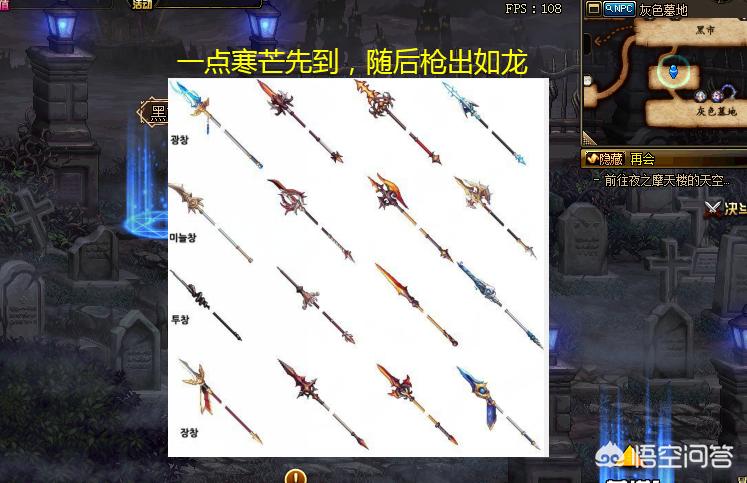 6、魔枪士武器从上到下分别为:光枪、战戟、暗矛、长枪。