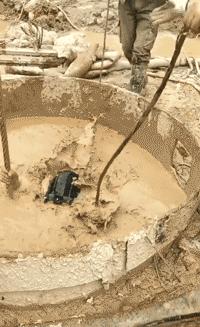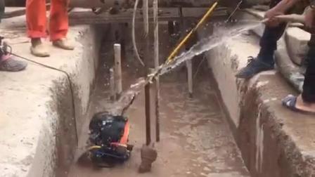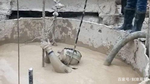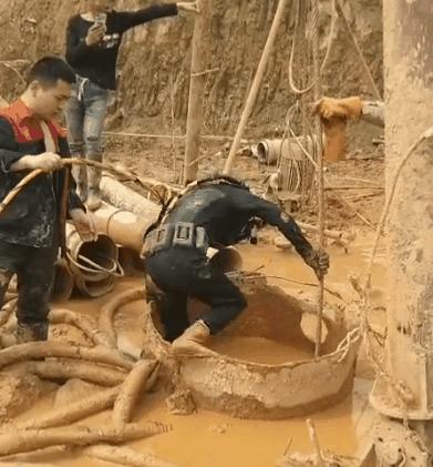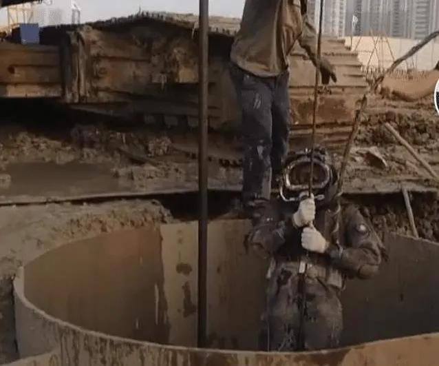 人很快就消失在泥浆中,只留下水面涌动的痕迹,有的基坑直径不到两米,深度有几十米深,里面全是浑浊的泥浆。我们知道泥浆里伸手不见五指,在那个世界只有潜水员知道是漆黑冰冷的。