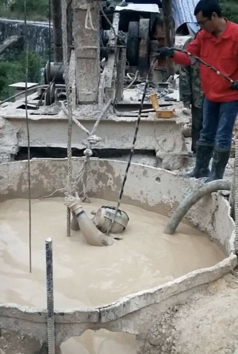 - 可见度低:工地钻井时,防止钻井过程中井壁坍塌,通常要往井里注入泥浆,使泥浆液柱的压力略高于地层孔隙压力,潜水员下潜十几米深,视线几乎位零,全靠摸索。有人说为什么不把泥浆抽干,如果把泥浆抽干,井容易坍塌,风险反而更大。