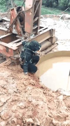 除此之外,穿戴的装备也不能保证百分百没问题。在井下复杂的环境里,氧气管、潜水服和身上的绳子是很有可能碰上尖锐物的,这就有破裂的风险,而井里的水和沙就会涌入进去,工人的行动就会受阻。