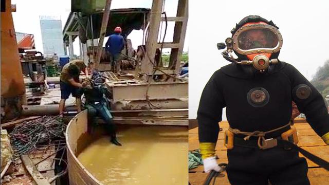 桩基钻孔桩在施工过程中钻头掉落,需要打捞上来,通常称为工地“水鬼”,他们要潜入至工地钻孔灌注桩水下50多米深的地方作业。