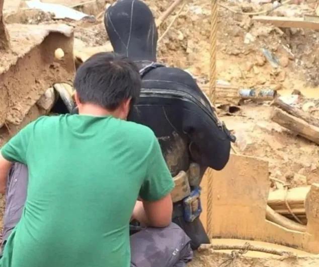 然而,并不是每次都能顺利地把砖头捞上来,这时候就需要请到工地的水鬼进行泥下打捞。