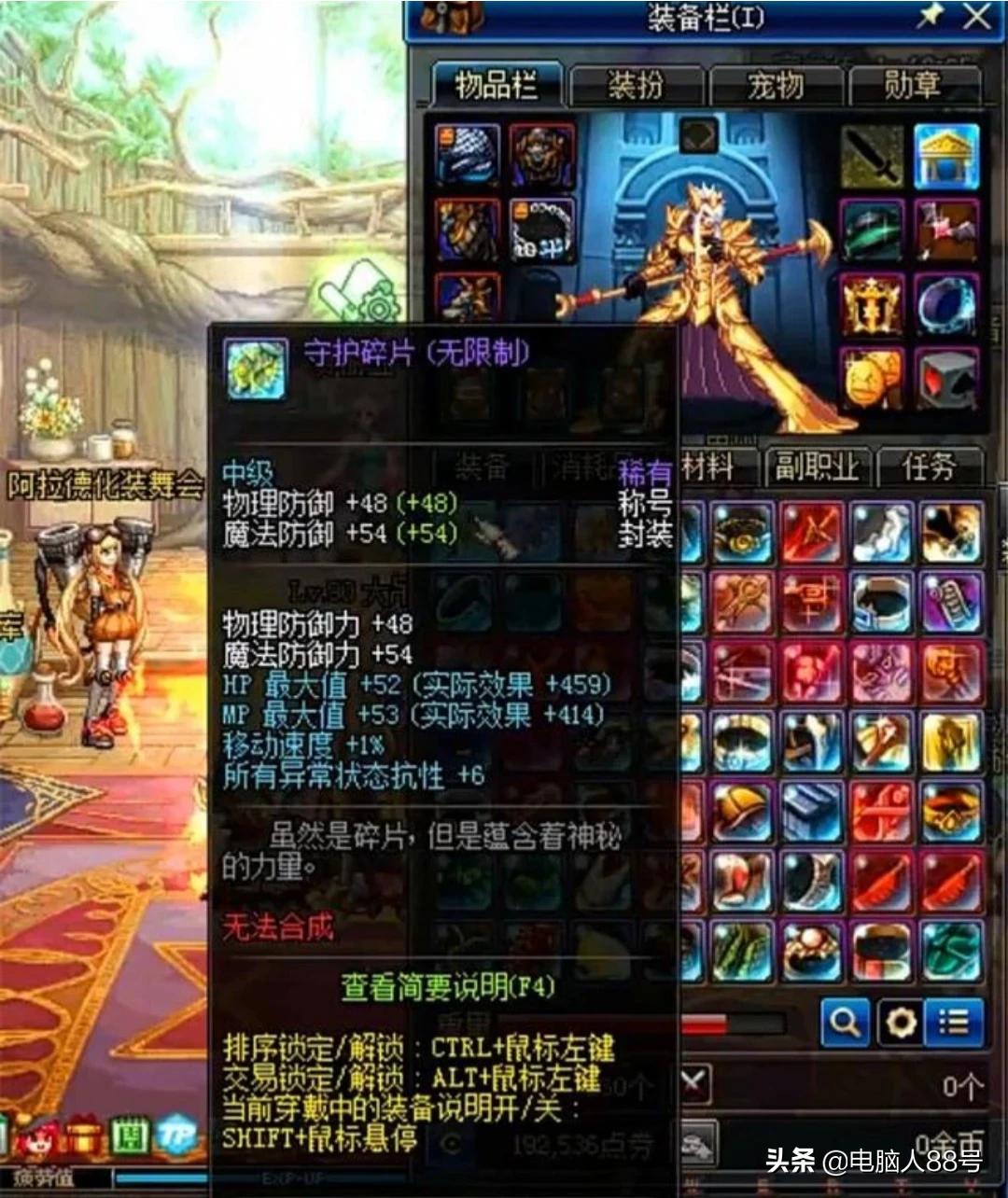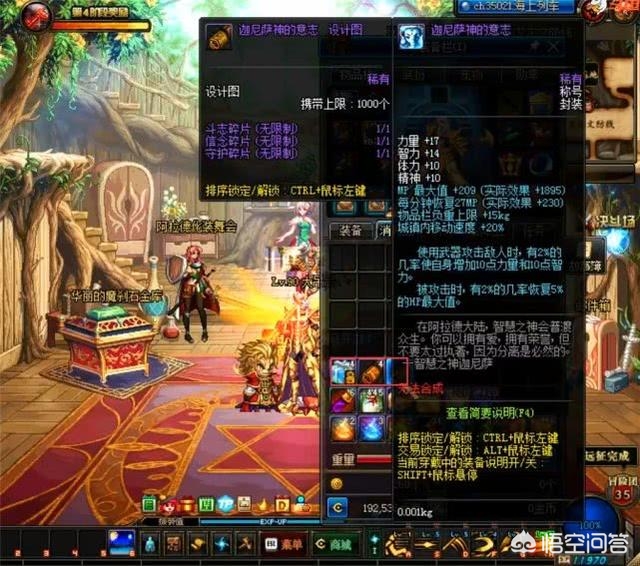 其次我们从宝哥的背包中可以看到还有一个设计图纸,它的作用是把斗志碎片、守护碎片、信念碎片合成一体,生成一个迦尼萨神的称号。在DNF的早期版本中,不管是碎片,还是迦尼萨神的称号都很常见,但是现在却难得一见了。不管你从拍卖行怎么搜,都搜不出来。看来是时代变了,有些装备势必要退出DNF的舞台。