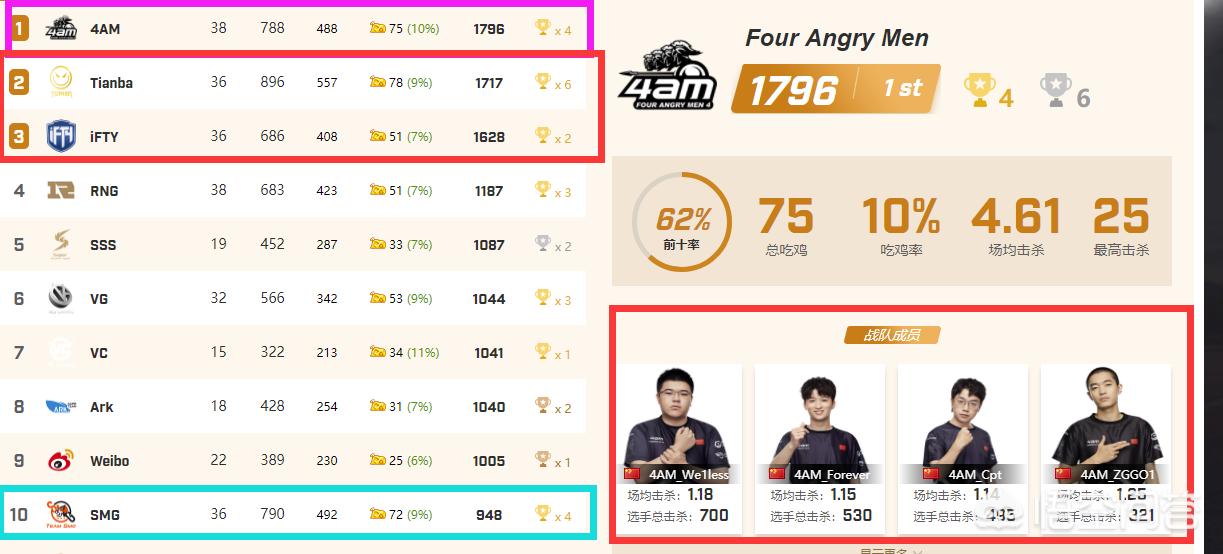 一,绝地求生国内排行榜:4AM首次登顶,天霸第二,iFTY第三,SMG跌至第十,你认可该榜单吗?