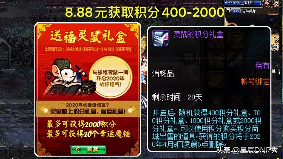 目前小欧准备在2.20日的时候,花8.8块去购买送福灵鼠礼盒获得积分,在去兑换稀有装扮永久兑换卷。