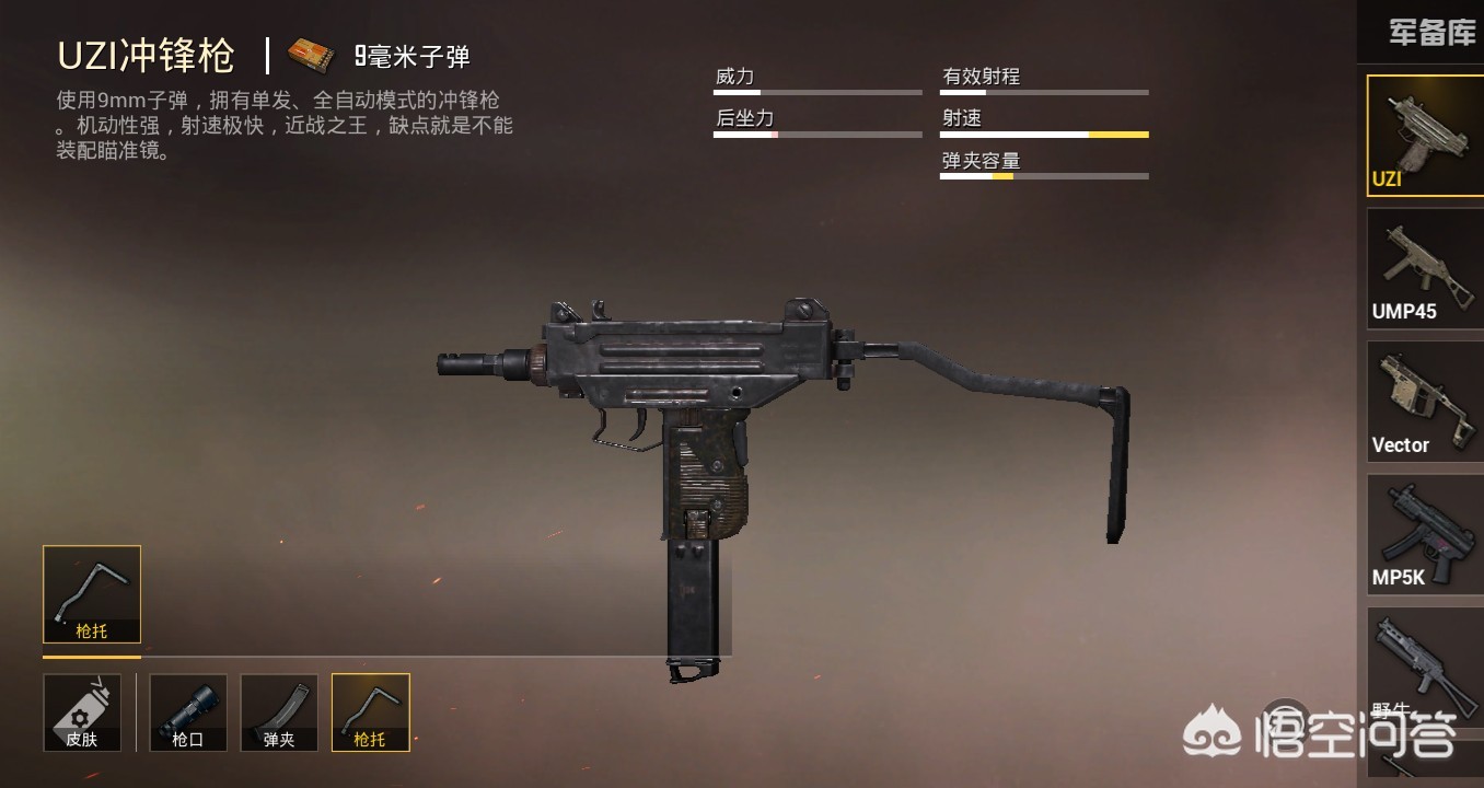 首先要说的很多人都认可的UZI冲锋枪,射速快,稳定高,号称近战之王!缺点是不能装倍镜。