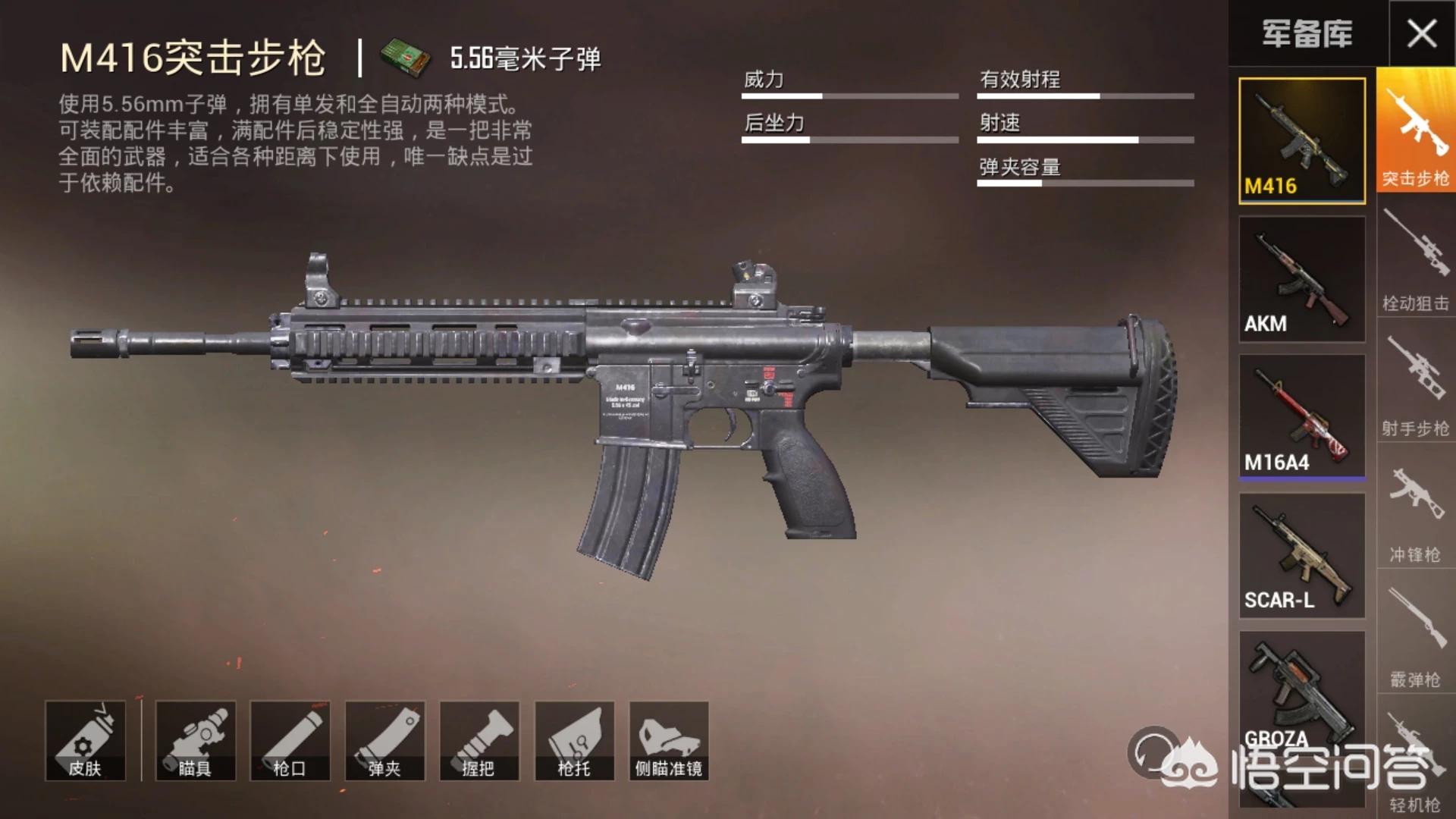 1、M416步枪M416步枪的特点:射速快,精度高。