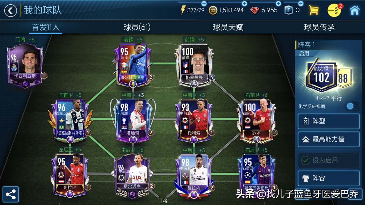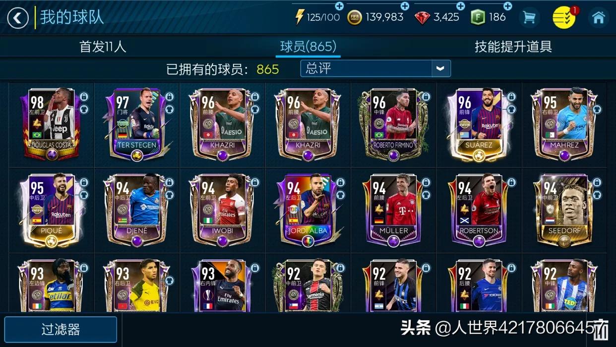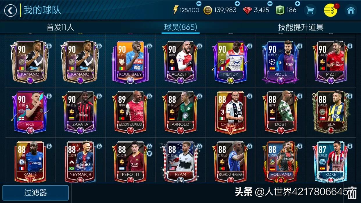 多参加活动,活动球员不比氪金的差。如果你想买一个你最喜欢球队的化学反应满级套的话,你的金币够用。到了后期比如说你120级,化学反应是50,进攻对战碰见一个和你一样等级的时候但他化学反应140到时候同级只能被吊打。我个人还是很看重化学等级的。下面是我的阵容,后来换成了利物浦套。
