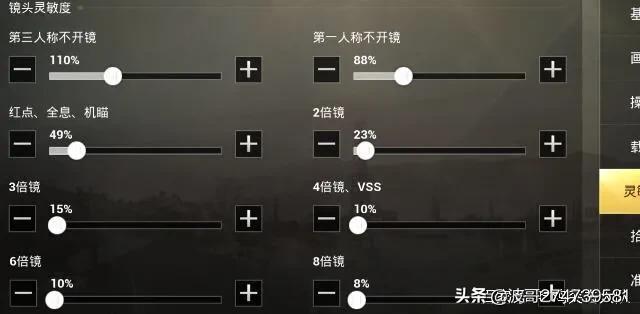 第四步灵敏度设置。这个也是非常重要的,我就不一个个打字说了。大家看小编图片中的灵敏度设置。把自己手机调成这样。然后自己去训练场,拿着所有的倍镜,练习三指操作,左手开枪移动,右手压枪。练一个20米50米100米压枪,如果你的倍镜跳动厉害,上下左右浮动太大。那这个灵敏度就不太适合,适当在训练场把灵敏度再次调低。只有反复的实验,才能找到适合自己手机的灵敏度。狙击枪就是一个98k就行。八倍镜灵敏度调到八,六倍镜是10.射击训练场移动靶。我感觉新手的训练场至少得训练两个多小时,才能得心应手。