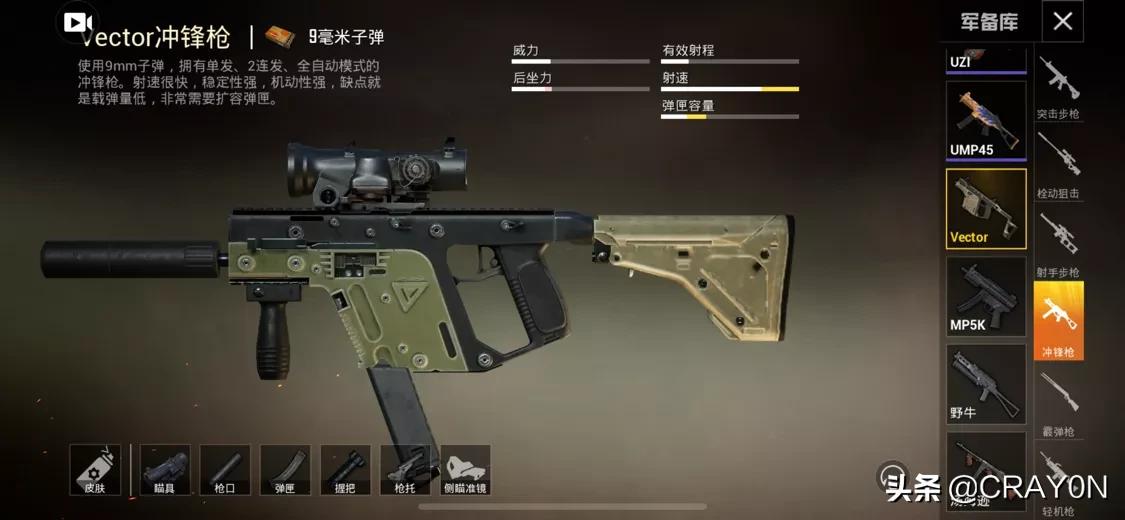 维克托无疑是9㎜系列中,属性最全面的冲锋枪,不仅能装配高倍镜,而且射速方面也不输UZI,装上扩容持续输出也不低。