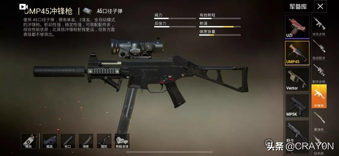 个人建议:冲锋枪当中只推荐9㎜的维克托和.45口径的UMP45,如果非要二选一,那么肯定是UMP45,毕竟在相同弹夹容量的情况下,威力会显得更加重要,而且维克托太快的射速也意味着它拥有更低的容错率。