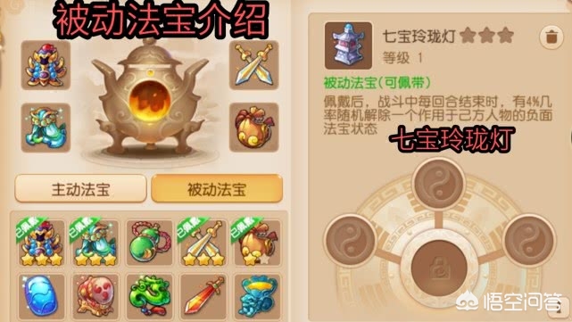 7.七宝玲珑灯。每回合开始时有一定几率随机解除一个作用于己方的负面法宝状态,因为法宝技能的使用率的原因,个人认为实用性不强。