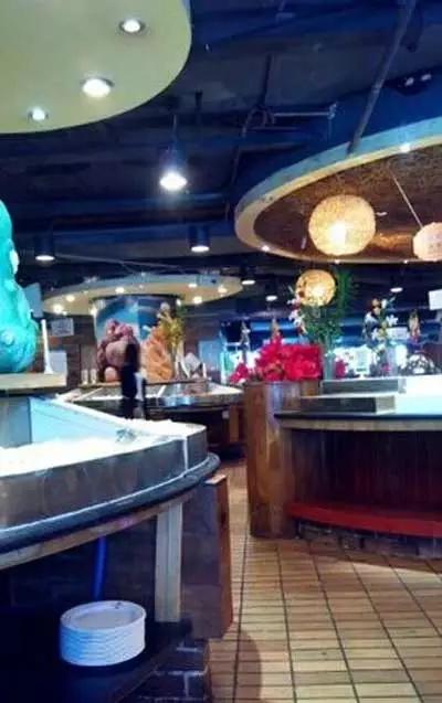 环境杠杠的,一进去各种高大上的感觉,貌似进入了海底世界一样,服务也十分积极,清理空盘很快,各式各样的海鲜排排坐,蔬菜、烧烤、刺身什么的种类很多、粤菜、泰国菜、日本料理等不同种类也可以满足多种口味,推荐他家的生煎鹅肝,不要太攒劲!