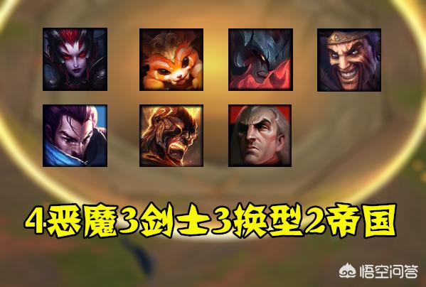首先是4恶魔3剑士3换型2帝国,具体由火男、乌鸦、蜘蛛、纳尔、剑魔、德莱文以及亚索组成,这套阵容虽然比较贵,需要两张5费卡,但是阵容强度还是不错的,因为这套阵容李有火男、德莱文两个暴力输出点,火男不用多说,德莱文虽然9.16b被削了只要升到两星有装备,依旧砍瓜切菜。但有一个缺点就是不平滑,体现在乌鸦这个点,作为一个恶魔、换形师的5费卡,前期没有什么卡可以替代它,如果一直刷不出来的话就非常尴尬。